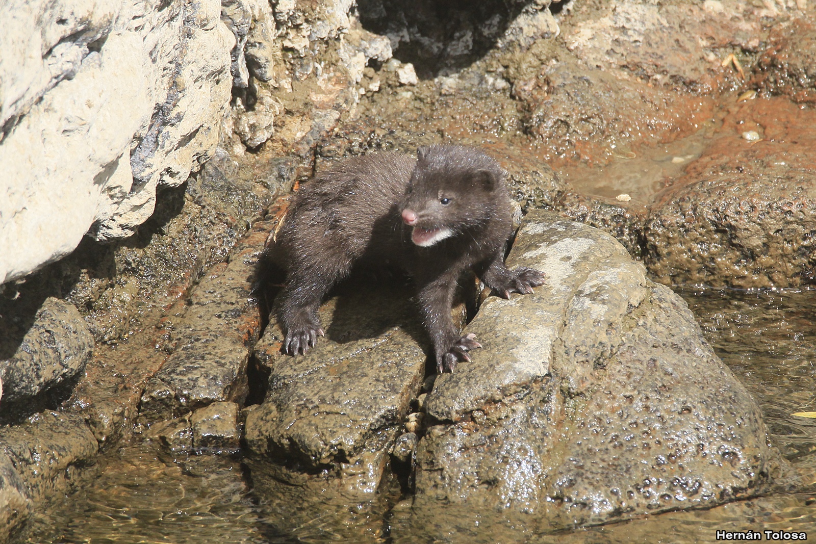 Presenta marcado dimorfismo sexual, donde el macho posee plumaje negro con blanco en remeras internas, en cambio la hembra tiene dorso castaño, estrías tenues y negruzcas en la frente, abdomen blanquecino.